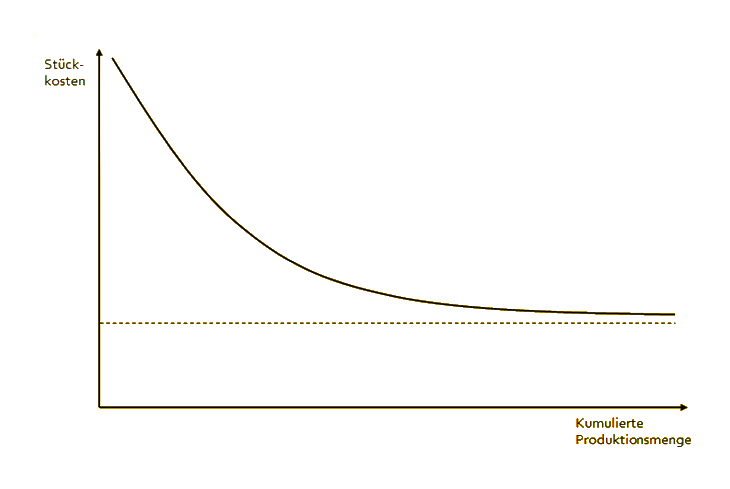 Typischerweise sinken die Kosten um 20 bis 30 % bei einer Verdoppelung der Produktionsmenge.